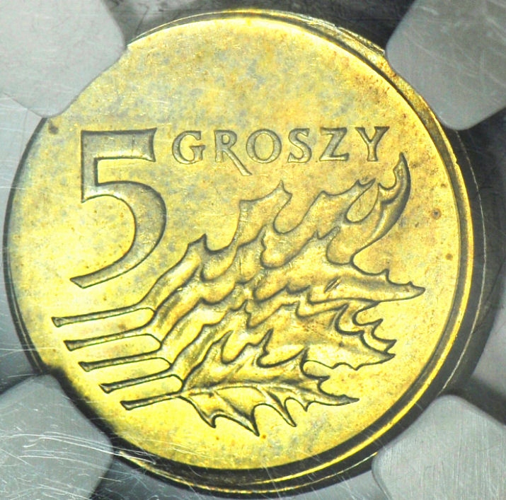 NF 5 Groszy 2008, Destruct, Error, Mint MS64 Mint
