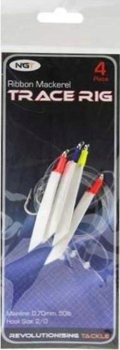 Комплект из четырех снастей для ловли скумбрии с лентой. Предназначен для морской рыбалки. Привязана на прозрачной леске 0,70 мм / 50 фунтов, крючки размера 2.