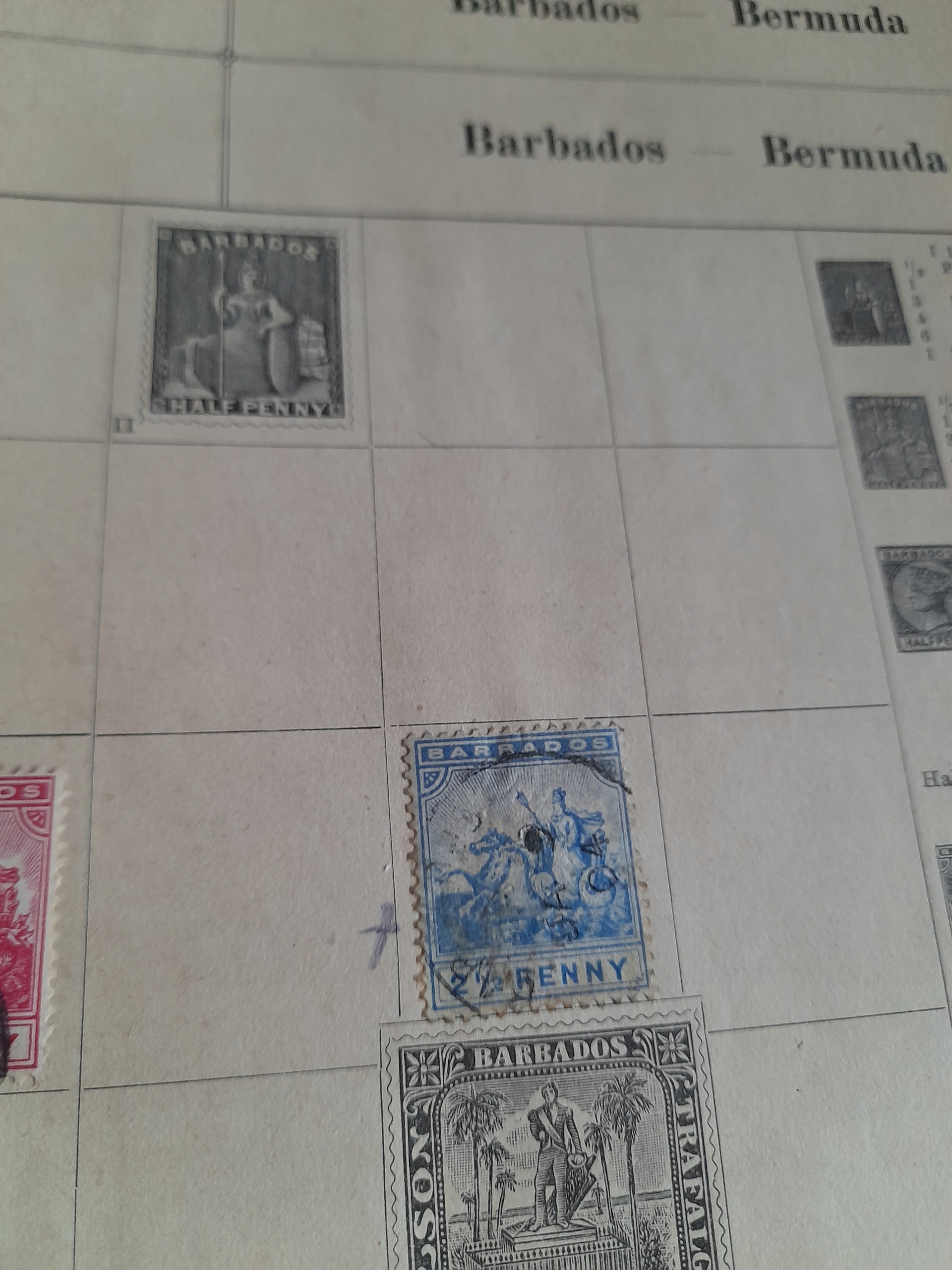 НЕТ. 35. БАРБАДОС. ОЧЕНЬ СТАРАЯ КОЛЛЕКЦИЯ ЦЕННЫХ МАРОК НА КАРТОЧКЕ. Значения на наклейках или иным образом прикреплены к страницам карты. Товары будут отправлены на открытке с фотографиями. Все показано на фотографиях. Состояние как на фотографиях.
