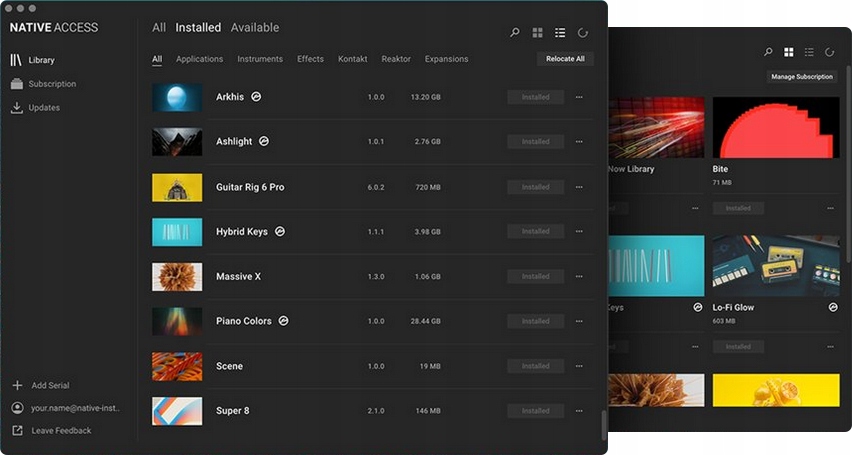 Благодаря совершенно новым функциям поиска, списка и жанровой фильтрации Native Access 2 — это улучшенный способ управления всем вашим программным обеспечением Native Instruments. Загрузка, активация и обновление всех ваших инструментов для создания музыки выполняется быстро и легко, поэтому вы можете сосредоточиться на создании музыки.