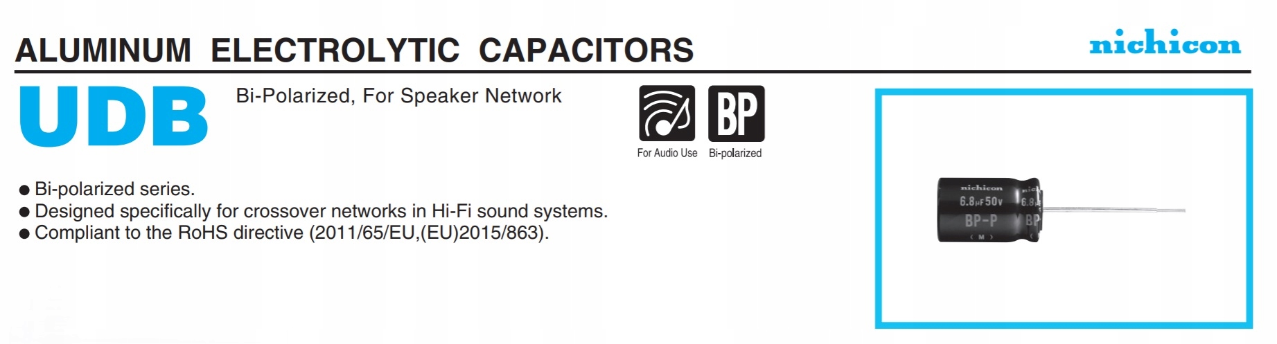 Биполярный электролитический конденсатор для использования в аудио: серия NICHICON DB — предназначена для кроссоверов громкоговорителей