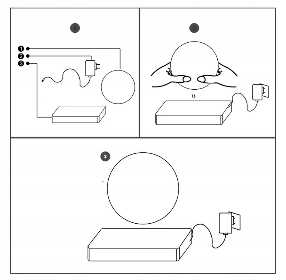- Лампа использует беспроводной индукционный источник питания, что означает, что лунная сфера может работать без необходимости в традиционных кабелях.