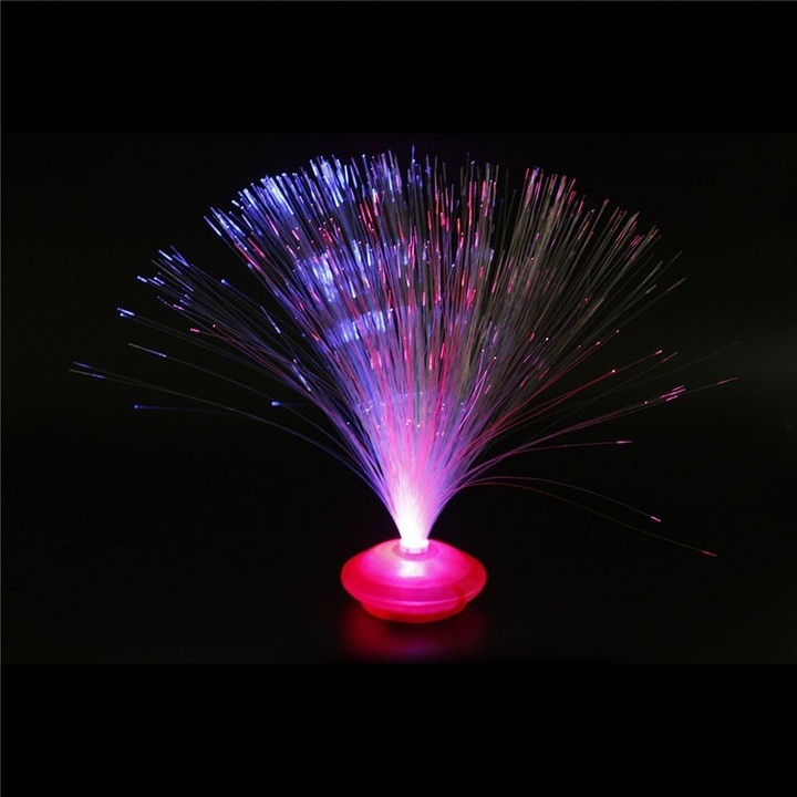 Основной достопримечательностью оптоволоконного светильника UFO является шлейф оптических волокон, которые передают свет от RGB-диода, излучающего световую последовательность из 3 цветов. (Красный-Зеленый-Синий).