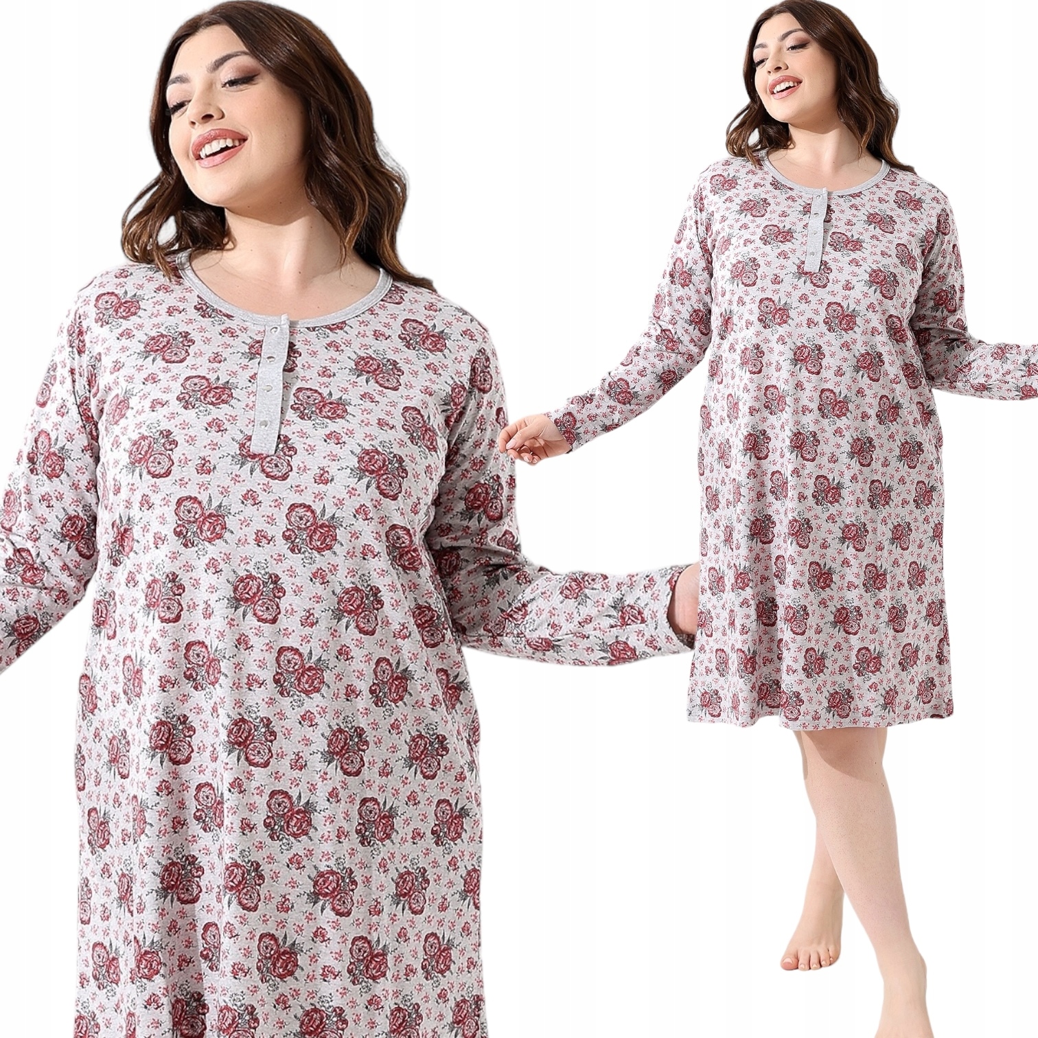 НОЧНАЯ РУБАШКА ИЗ ТУРЕЦКОГО ХЛОПКА, РАЗМЕР ПЛЮС, С ДЛИННЫМ РУКАВОМ, СО СТОПОМ