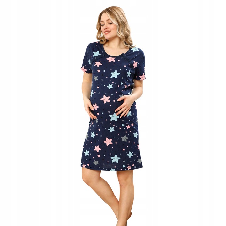 РУБАШКА ДЛЯ КОРМЛЕНИЯ КРАСИВОГО ТЕМНО-СИНЕГО ЦВЕТА С ГРАФИКОЙ ЗВЕЗД