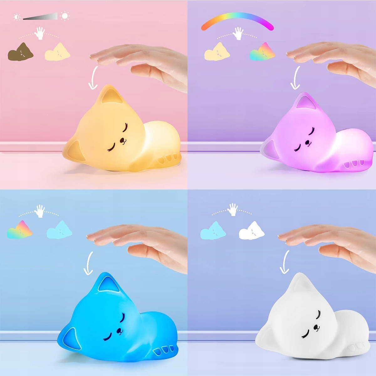 НОЧНИК ДЛЯ ДЕТЕЙ СИЛИКОНОВАЯ НАСТОЛЬНАЯ ЛАМПА CAT RGB LED ТАЙМЕР ДИСТАНЦИОННЫЙ