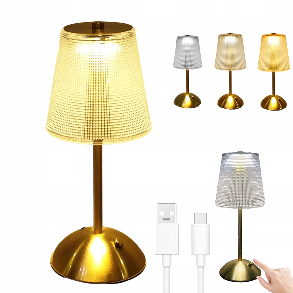 НІЧНИК НАСТІЛЬНИЙ СВІТЛОДІОДНИЙ RETRO GOLD, ЗАРЯЖАЄТЬСЯ USB, 3 РЕЖИМИ