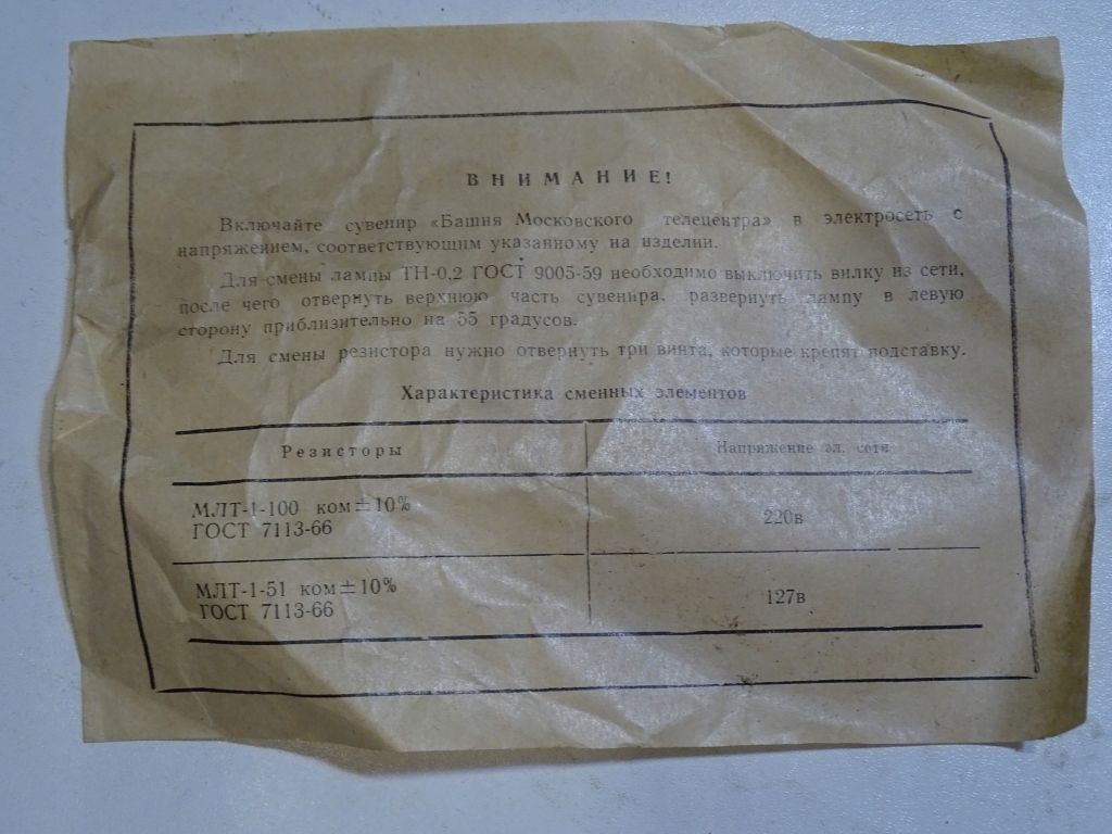 НОЧНАЯ ЛАМПА СОВЕТСКАЯ телебашня в МОСКВЕ