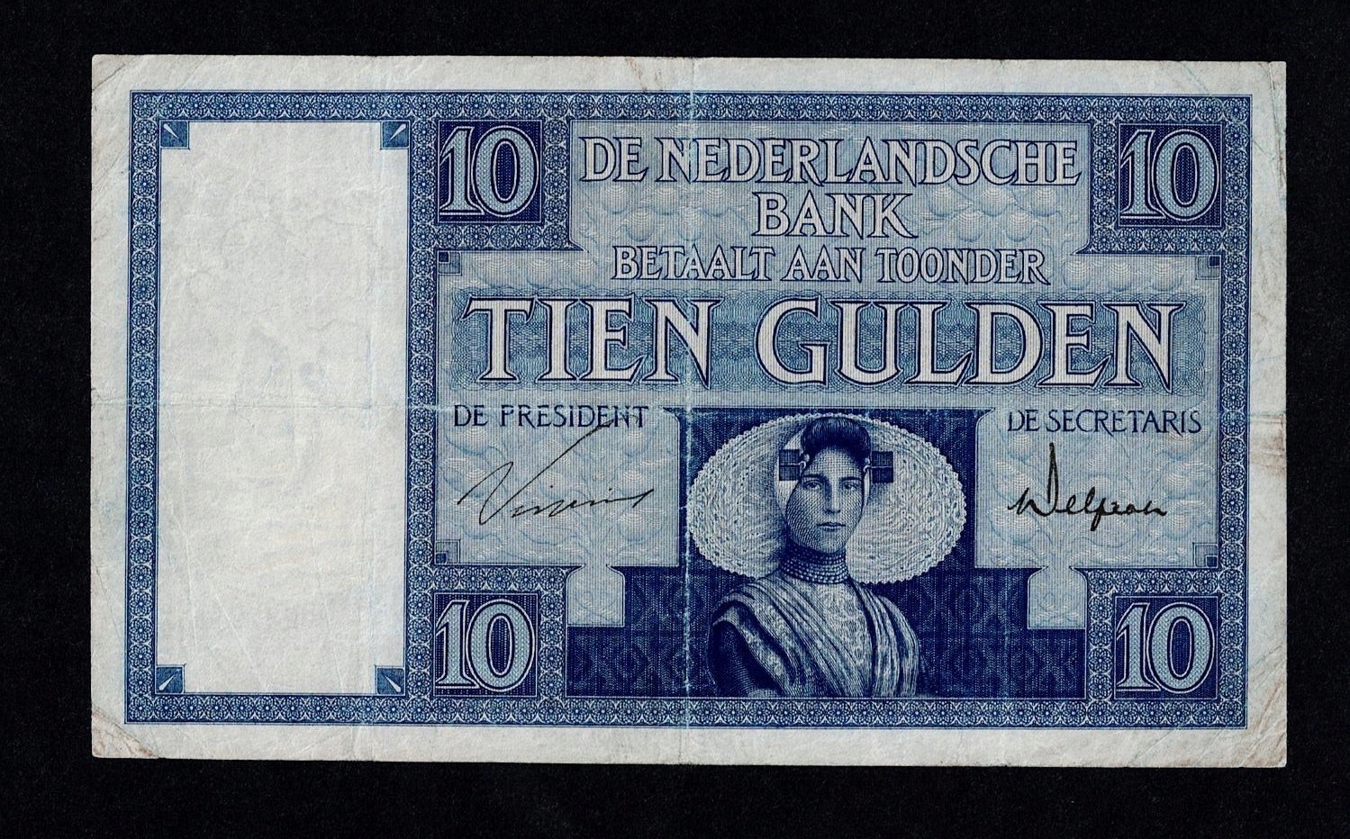 Нидерланды 10 Gulden 1929 P-43B VF Редкая нота!