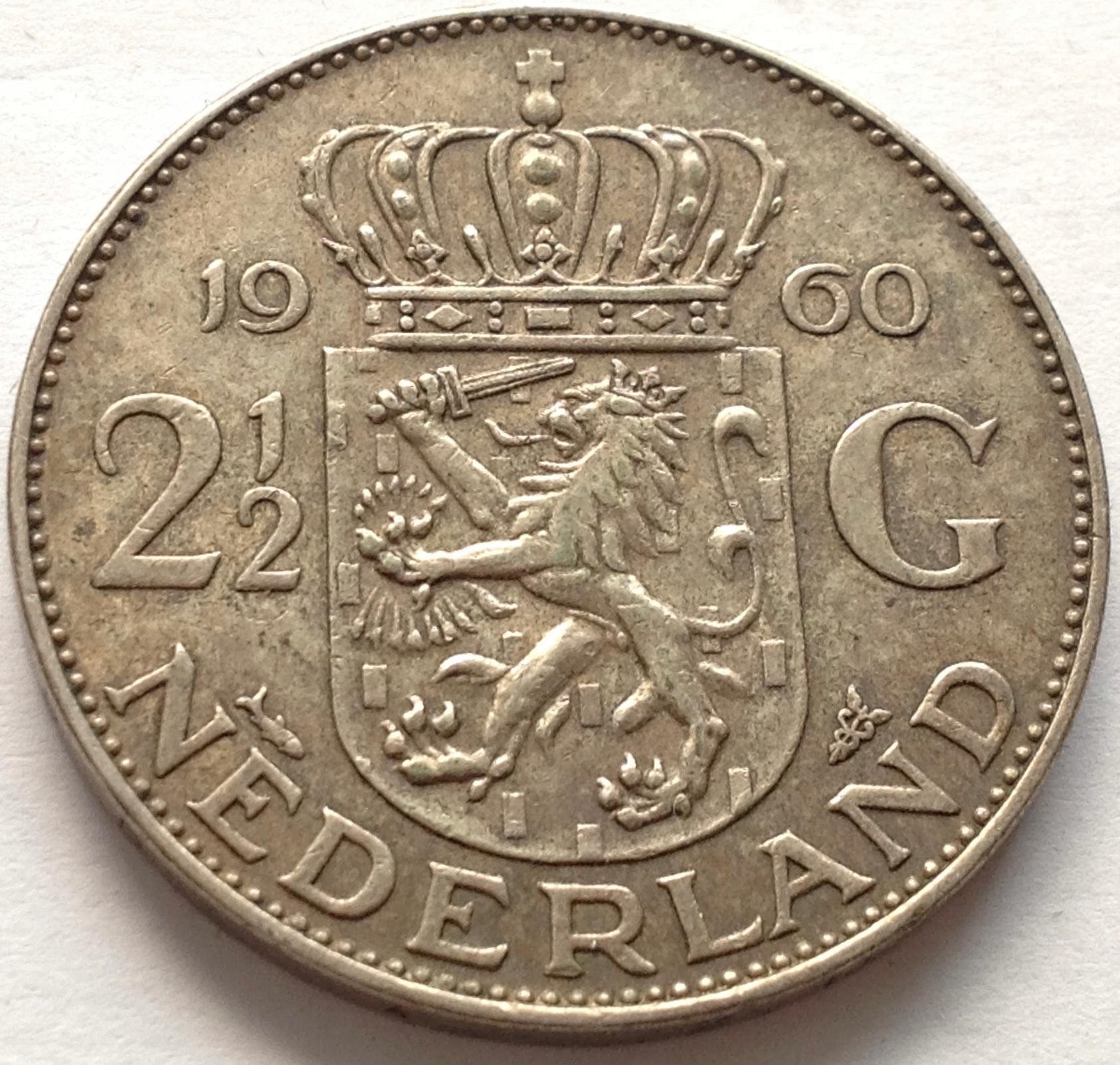 Нидерланды 2 1/2 Gulden 1960 Джулиана Сребро