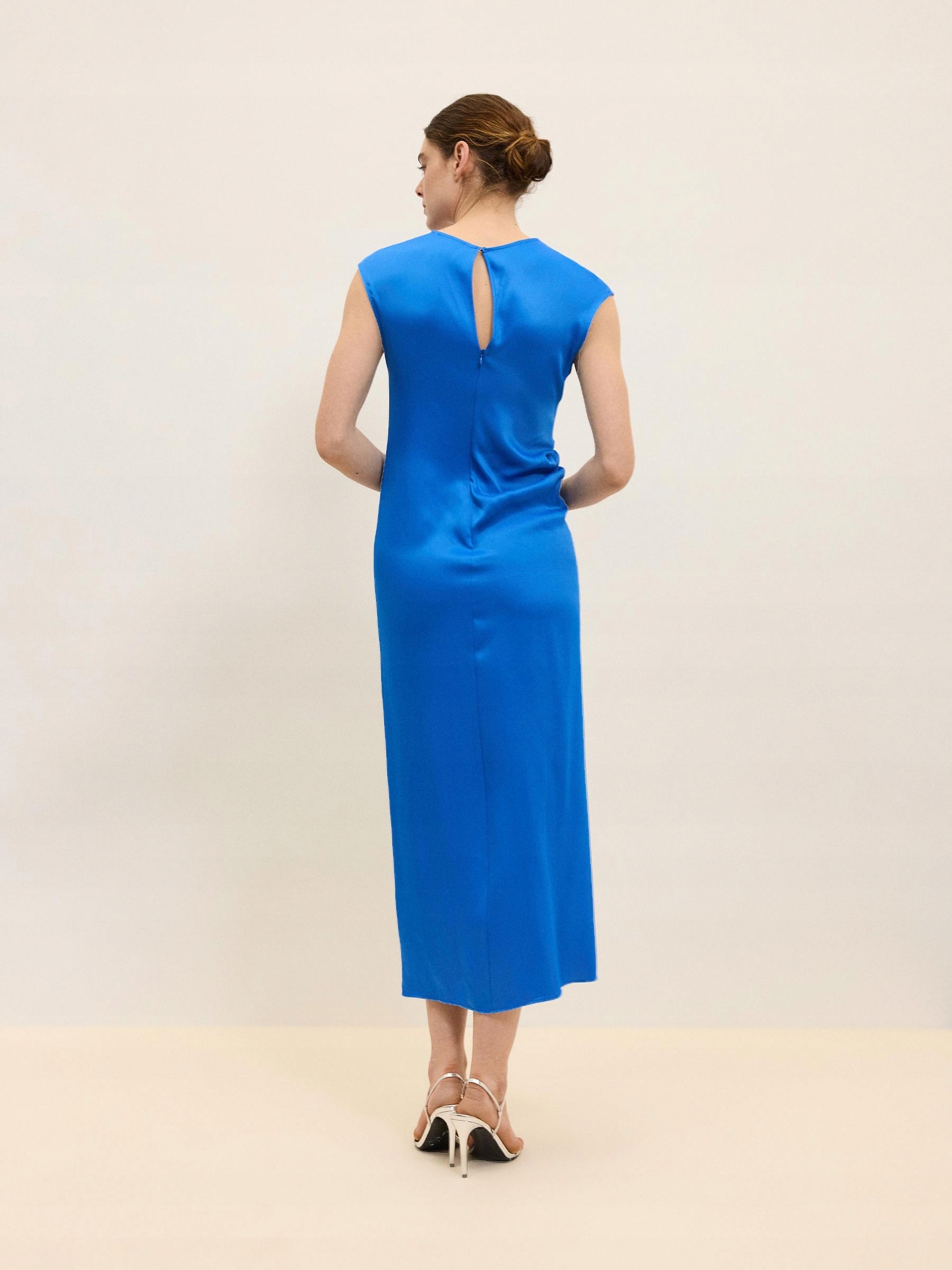 NIEBIESKA SUKIENKA MIDAXI CHABROWA ROZCIĘCIE MARSZCZENIE PROSTA