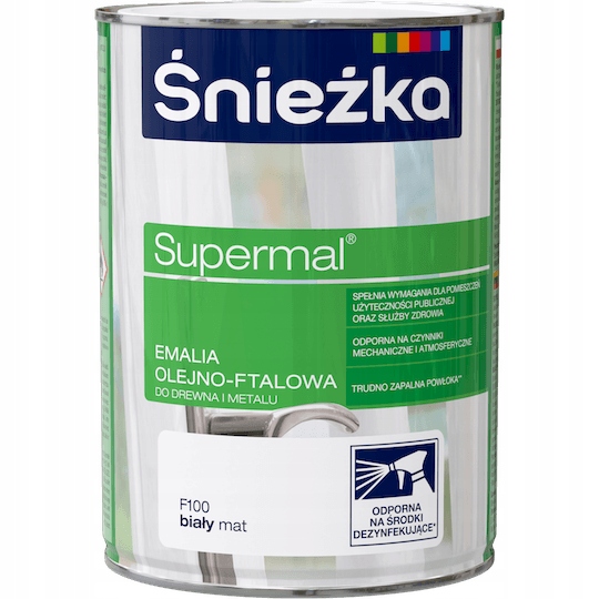 Śnieżka Supermal Маслофталатная эмаль, белая матовая, 0,8 л