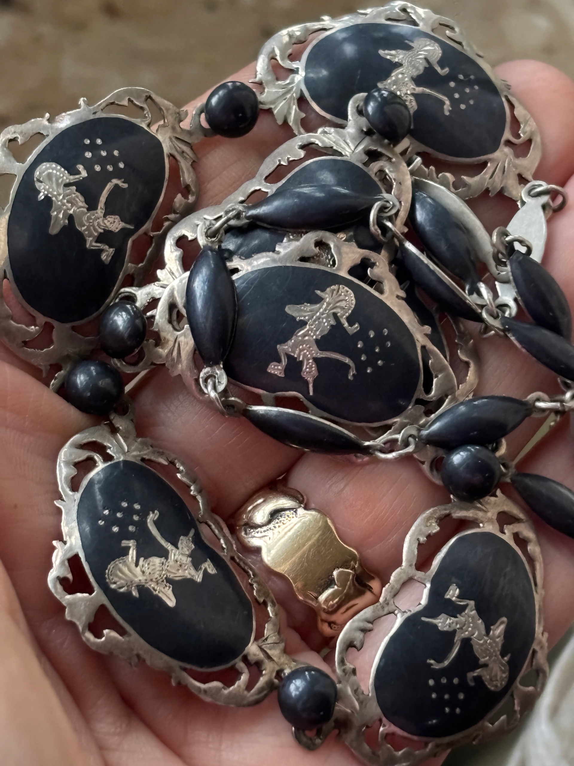 Ожерелье Niello Siam Chain состаренное серебро, черная эмаль, бог грома