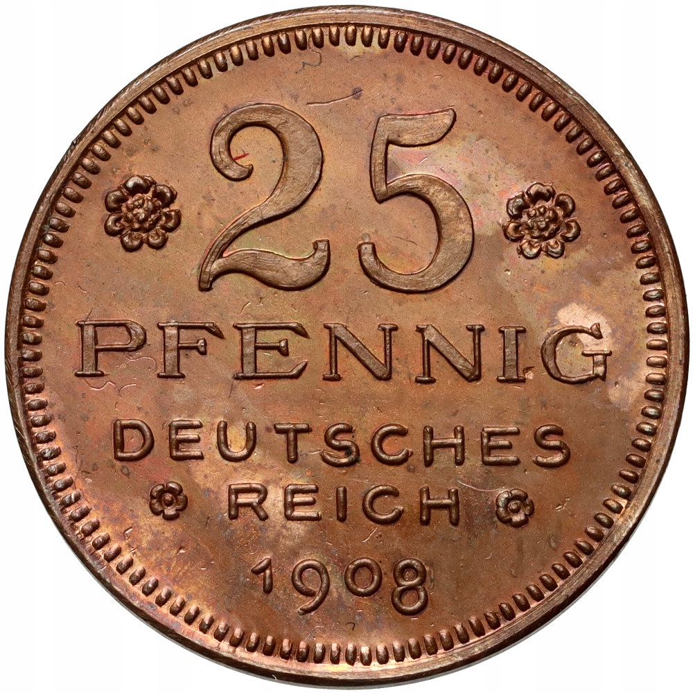 Niemcy, 25 fenigów 1908 D, Karl Goetz, PRÓBA