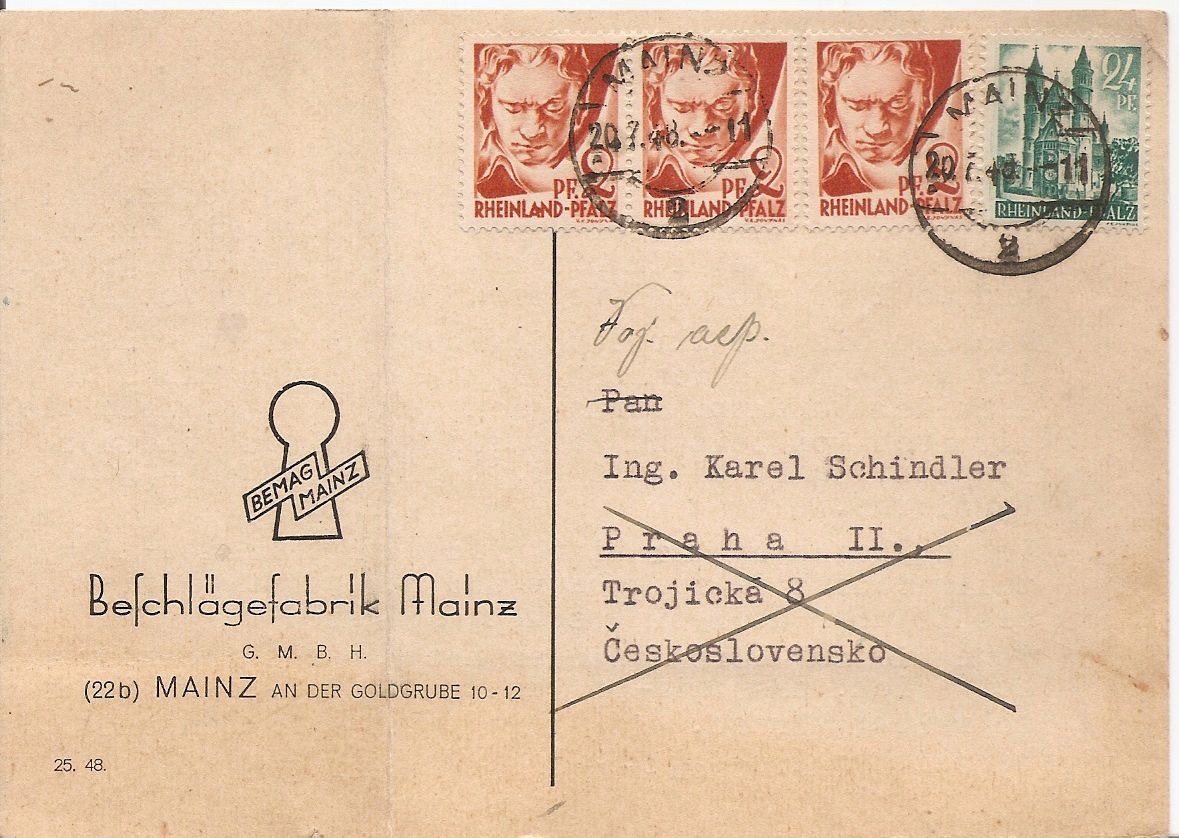 NIEMCY -karta firmowa -znaczki RHEINLAND-PFALZ -obieg 1948 rok