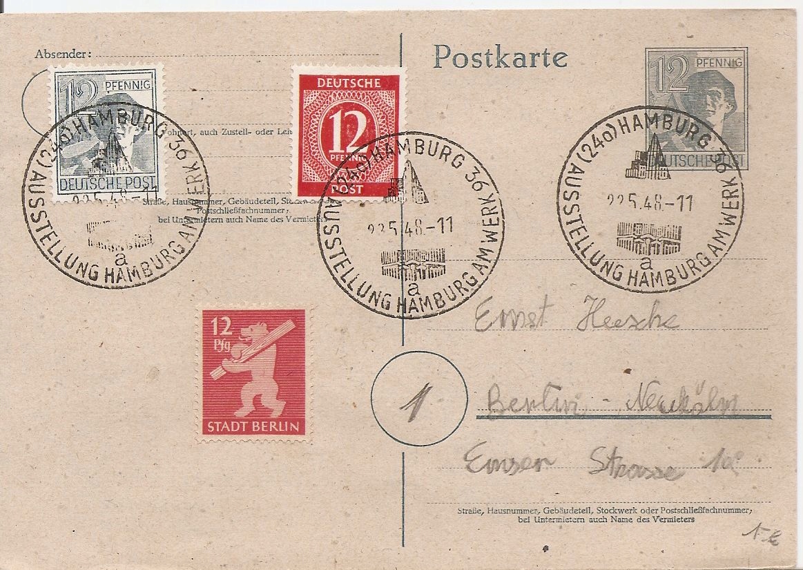 NIEMCY -postkarte -znaczki STADT BERLIN-obieg 1948 rok