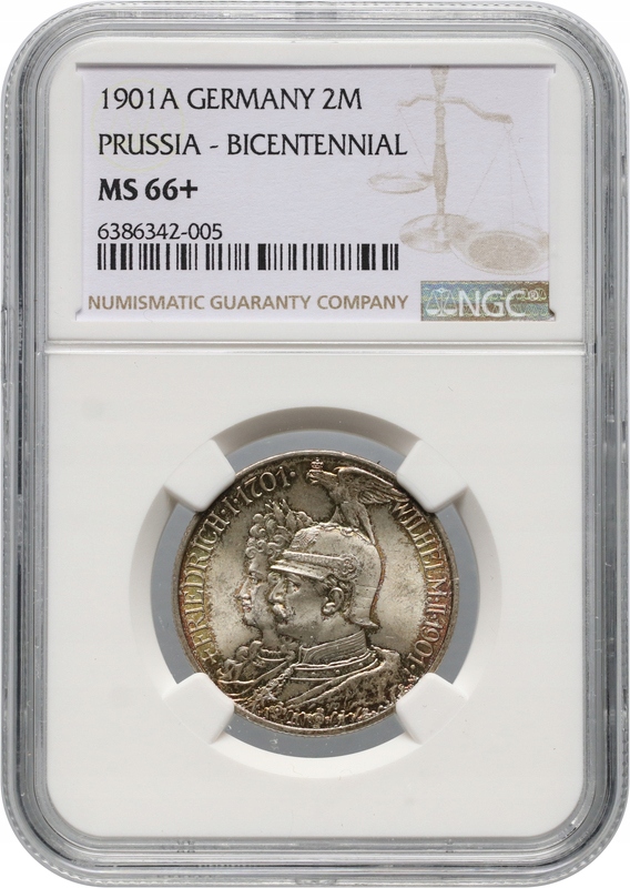 Niemcy, Prusy, Wilhelm II, 2 marki 1901 A, NGC MS66+
