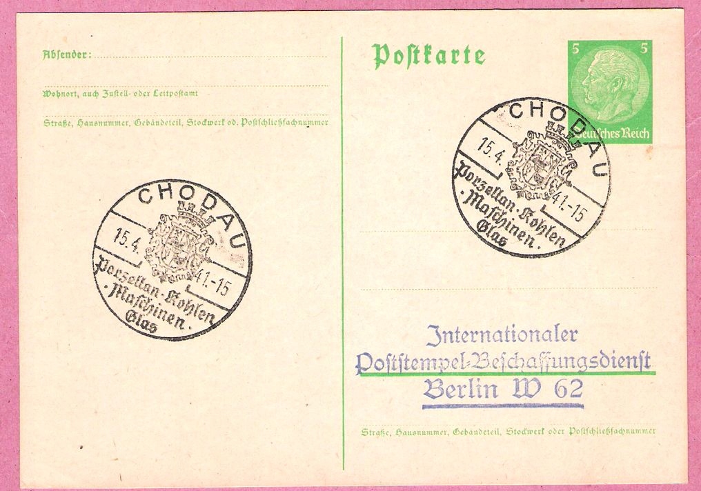 Niemcy 1941, cp Chodau, ob. Chodov Czechy, fabryka porcelany