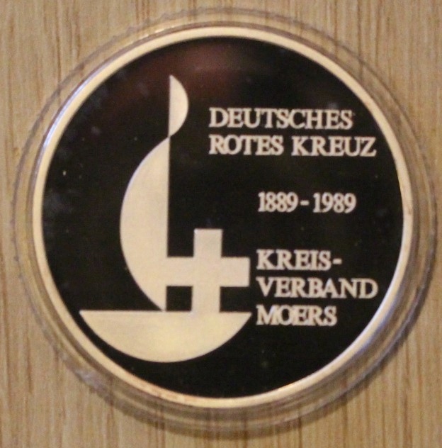NIEMIECKI CZERWONY KRZYŻ 1889 - 1989, 100 LAT, SREBRO, ETUI + CERTYFIKAT