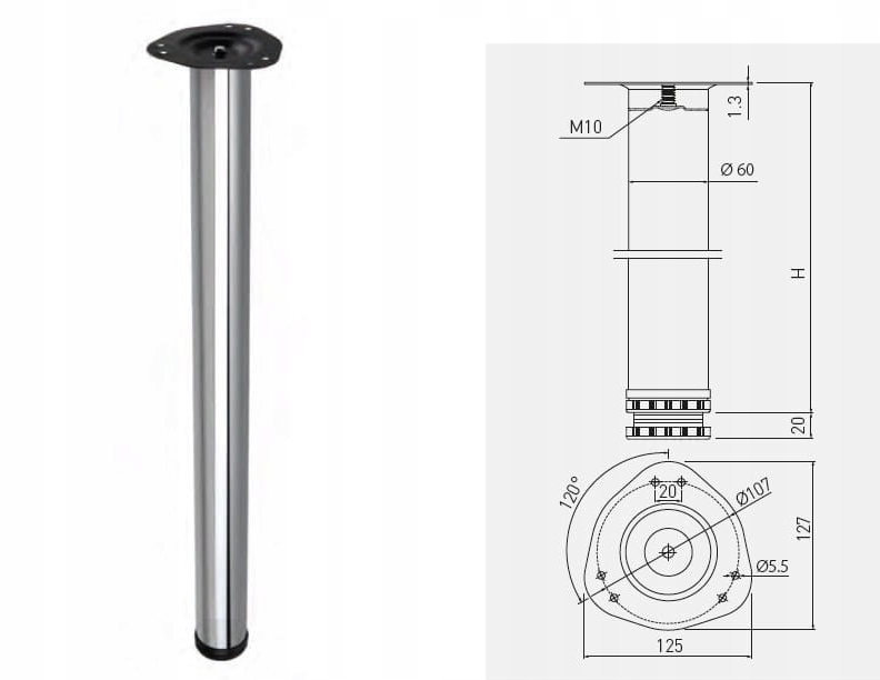 Мебельная ножка идеально подходит для письменного стола и столика. Ножка имеет встроенную регулировку в стопе.