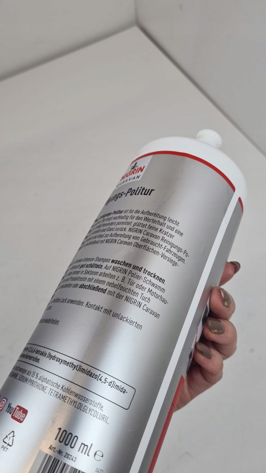 НИГРИН 20243 — профессиональное чистящее средство для автоприцепов емкостью 1 литр. Формула препарата эффективно удаляет грязь, пыль, атмосферные отложения и остатки насекомых с ламинированных поверхностей, пластика, алюминия и других материалов, используемых в автотуризме. Продукт был разработан так, чтобы быть нежным на поверхности и в то же время эффективным.