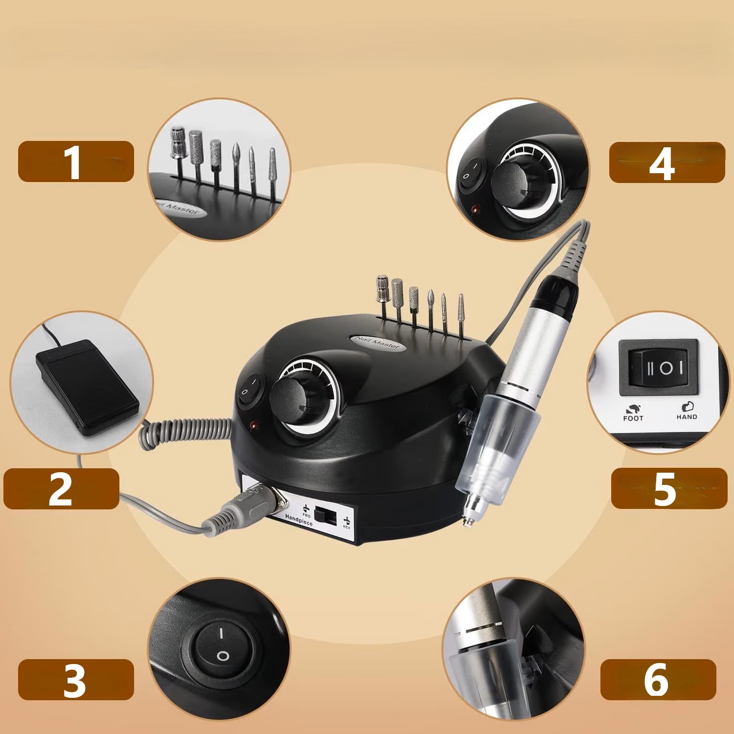 Позаботьтесь о своих руках и ногах, как в салоне красоты - не выходя из дома! Метка для фрезерования ногтей является идеальным решением для начинающих и профессионалов. Благодаря точной корректировке скорости и богатым набору советов, вы будете быстро, вы создаете идеальный маникюр и педикюр, удобно и безопасно.