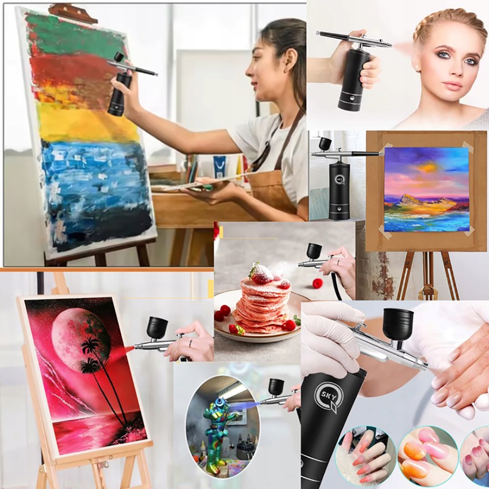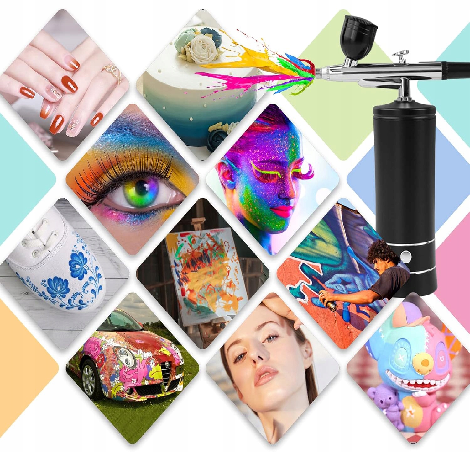 Наш комплект аэрографа можно использовать для различных такие приложения, как уход за кожей, татуировки, окраска распылением, украшение ногтей, украшение тортов и многое другое.
