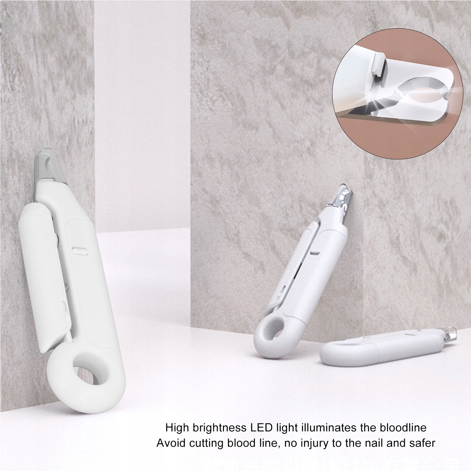 2. Светодиод: Светодиод: оснащен светодиодным светом в конце, этот триммер для резки ногтей позволяет вам найти точное место для быстрой и легкой резки, предотвращая повреждение крови ногтя, избегая кровотечения из -за чрезмерной обрезки.