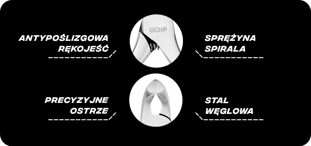 Массивные, согнутые лезвия идеально подходят для нарезать еще более твердые кожи или ногти . Их форма облегчает выполнение процедур даже в более сложных местах. Челюсти CęGów связаны методом соединения LAP, благодаря которого во время использования они идеально объединяются, что обеспечивает чрезвычайно точный Cut . У CęGI есть установленная крышка лезвия.