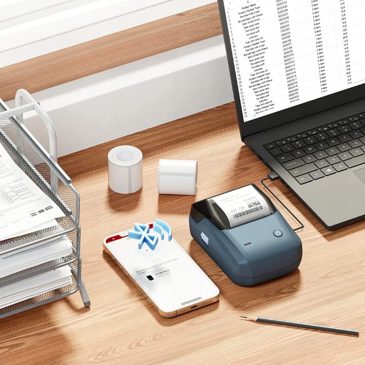 Принтер метки подключается к вашему телефону с помощью Bluetooth. Просто загрузите бесплатное приложение Niimbot из AppStore или Google Play, включите Bluetooth на своем телефоне и подключитесь, используя одну кнопку с устройством B1.