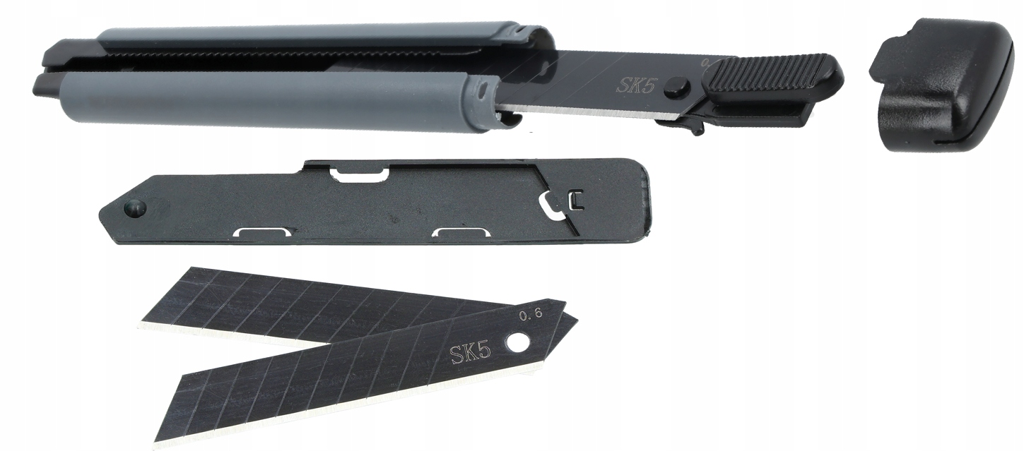 В комплект входят два запасных лезвия, спрятанные в контейнере для ножей. Просто снимите колпачок на задней стороне ножа. Съемный колпачок имеет выемку, которая используется для отламывания использованных сегментов лезвия.