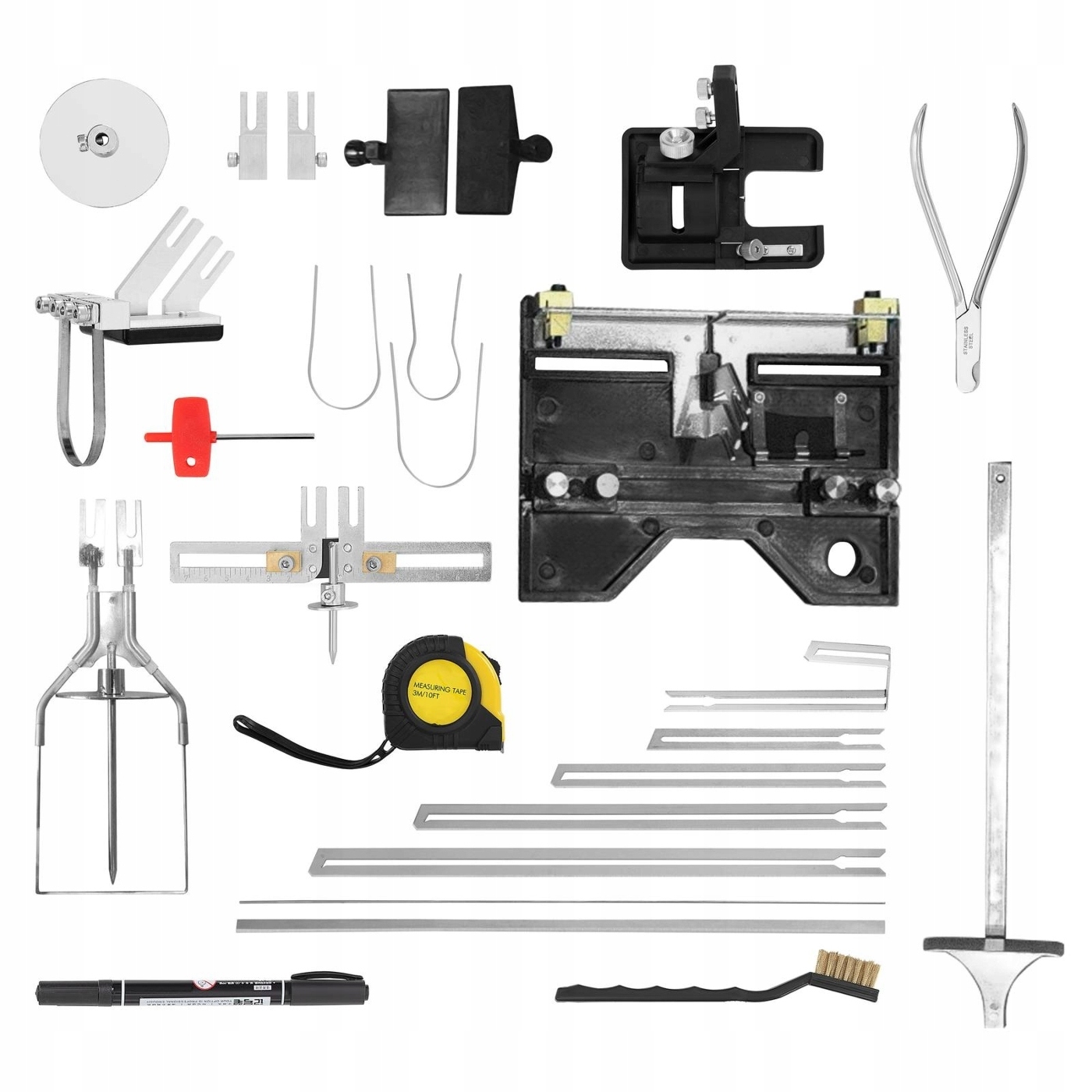 - Аксессуары: нож для резки пенополистирола поставляется с различными лезвиями, регулируемой направляющей, маркером, кистью и шестигранным ключом, и все это спрятано в практичном транспортировочном футляре