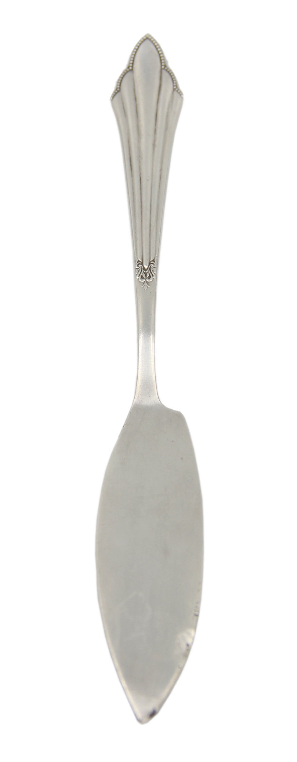 Серебряный рыбный нож с WFM. Подписанный. Следы использования. Подпись, используемая в 1880-1918 годах. Очищен из -за очень высокой грязи. Размеры; Длина 21 х 3 см. Я рекомендую