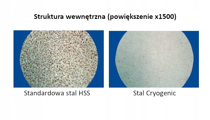 Этот инструмент относится к более высокой линейке компании Crown — Криогенный. Инструменты этой линейки изготовлены из стандартной стали HSS М2, но с соблюдением дополнительного технологического процесса – после закалки сталь резко охлаждается до -185°С. Благодаря такой обработке микроструктура стали меняется, она становится более компактной и, следовательно, более твердой и прочной. Конечным результатом является инструмент, который: