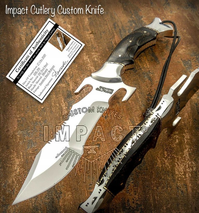 Новый, чрезвычайно красивый нож Боуи ручной работы, Impact Custom Knives, изготовленный из культовой стали D2. Отлично подходит в качестве большого охотничьего, туристического, походного и тактического ножа. D2-396