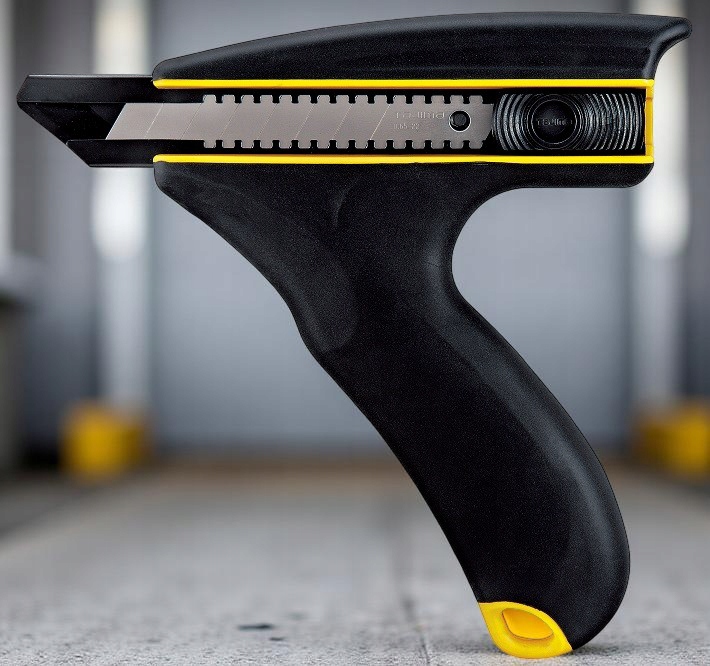 Уникальная ручка в форме пистолета не только обеспечивает удобство использования, но и значительно увеличивает контроль над инструментом. Это приводит к большей точности резки и безопасности работы. Анти -скользящая эластомерная ручка заставляет нож, вероятно, лежать в руке даже во время длительного использования.
