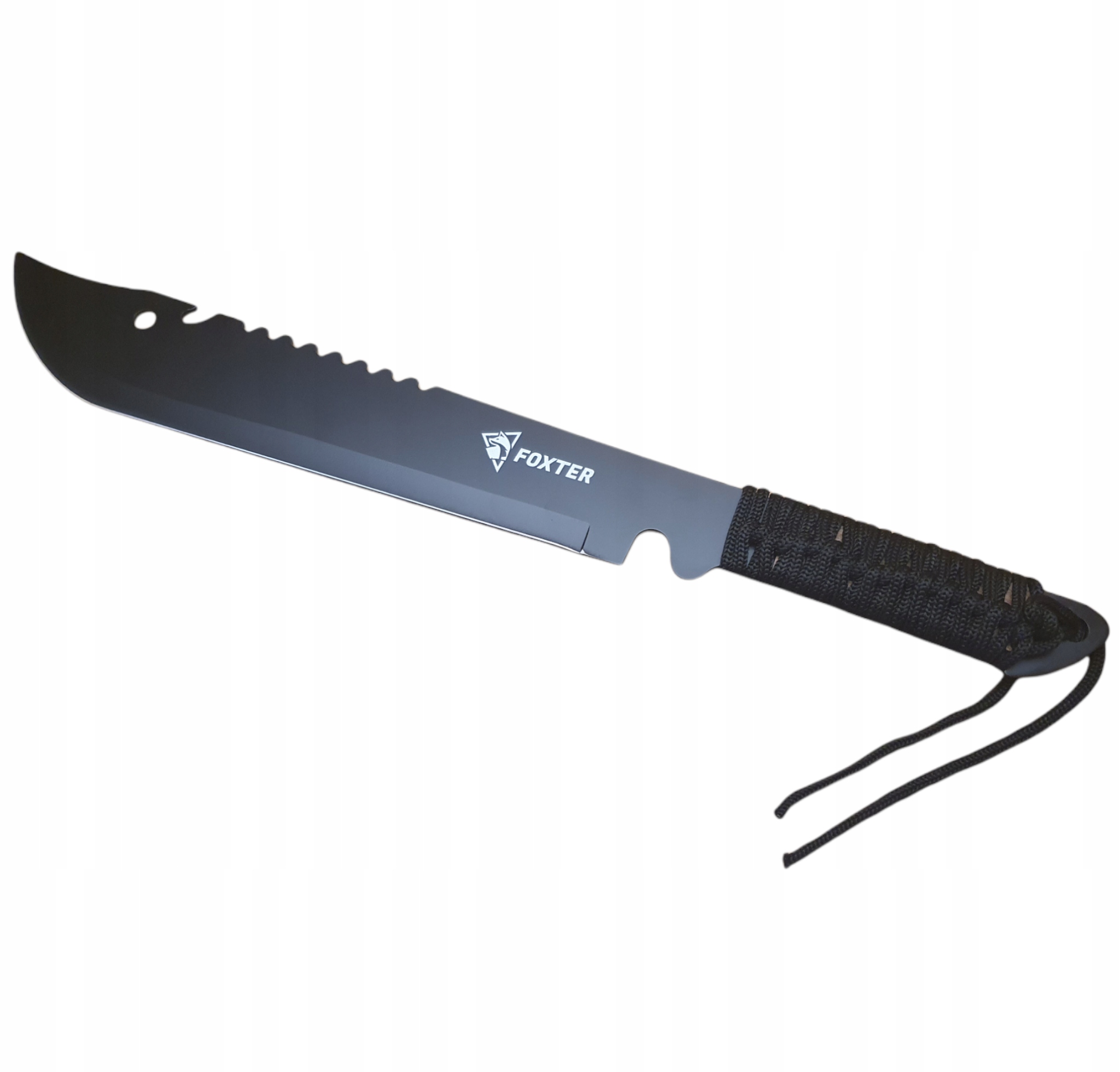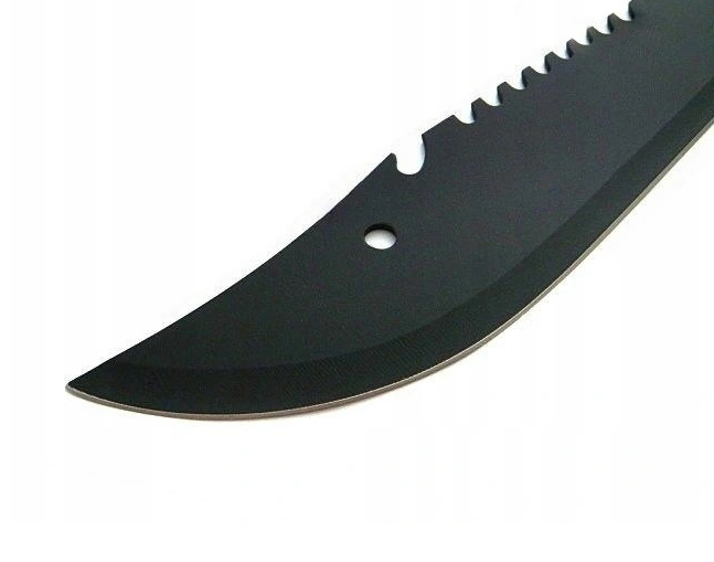 Рубочный мачете дополнительно покрыт черным защитным слоем, обладающим антикоррозийными и антибликовыми свойствами. Лезвие с удлиненным профилем «боуи» отличается исключительной остротой, дополнительно оснащено пилой и открывалкой для бутылок на тыльной стороне.