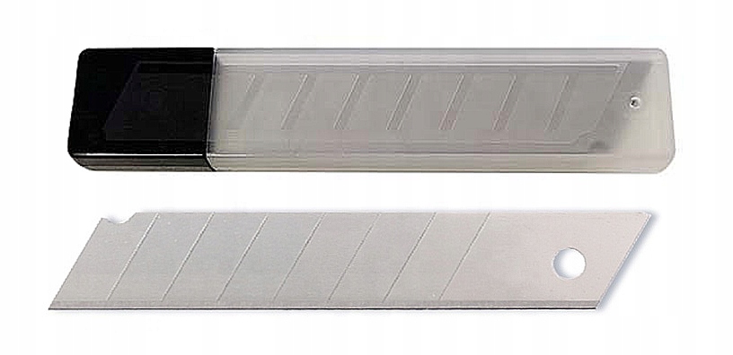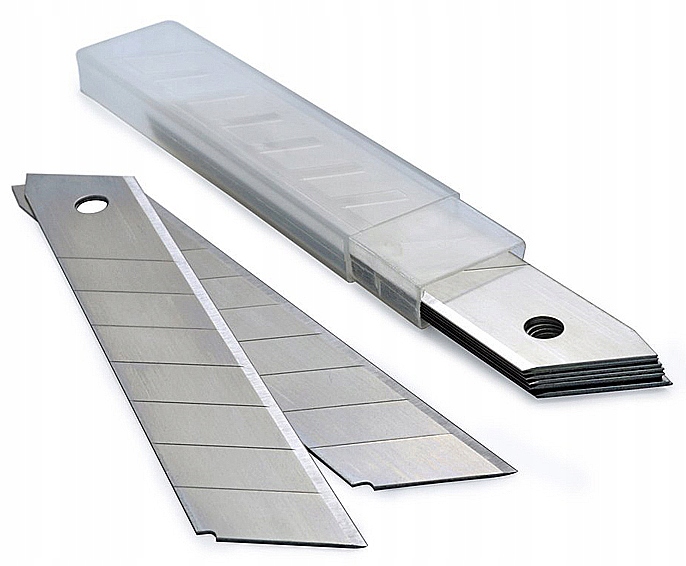 - 10 сменных лезвий в пластиковой коробке — 8 острых сегменты для разрушения.