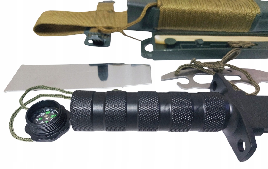 ✅ ✅ Эрагономическая ручка изготовлен из металла и имеет грубые поверхности. Благодаря этому нож отлично прилипает к руке и обеспечивает удобную, удобную работу. Широкий, металлический jelec эффективно защищает руку от нежелательного проскальзывания к передовой кромке. Ручка имеет казнь , в которой мы можем легко установить карандаш, легче, спички, линию рыбалки, крючок.