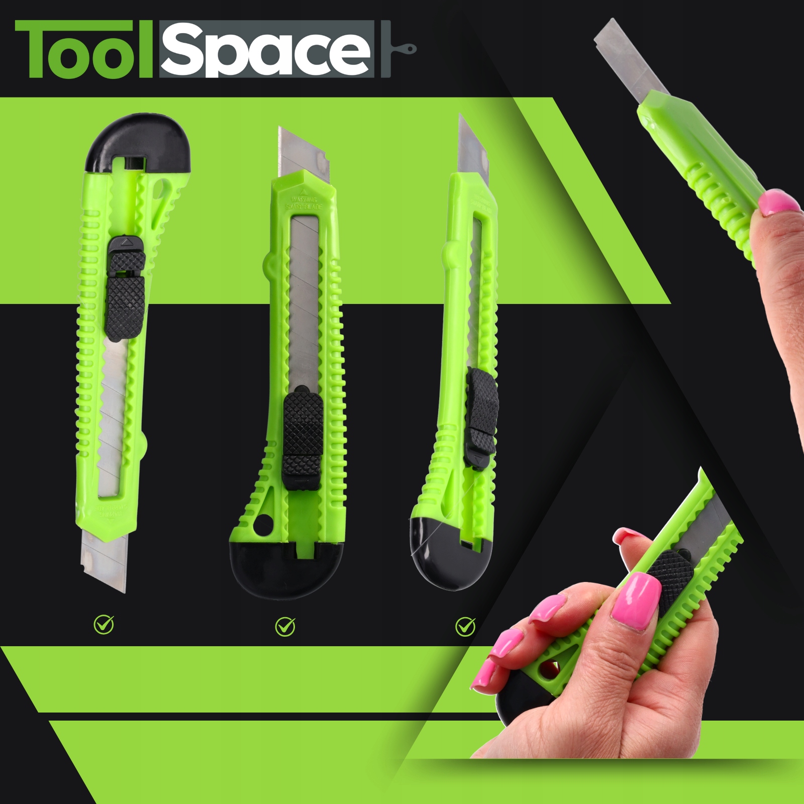 ✅Сегментированное лезвие 18 мм – Оснащено сменным лезвием, разделенным на сегменты, что позволяет быстро и удобно отламывать изношенную часть без замены всего лезвия.