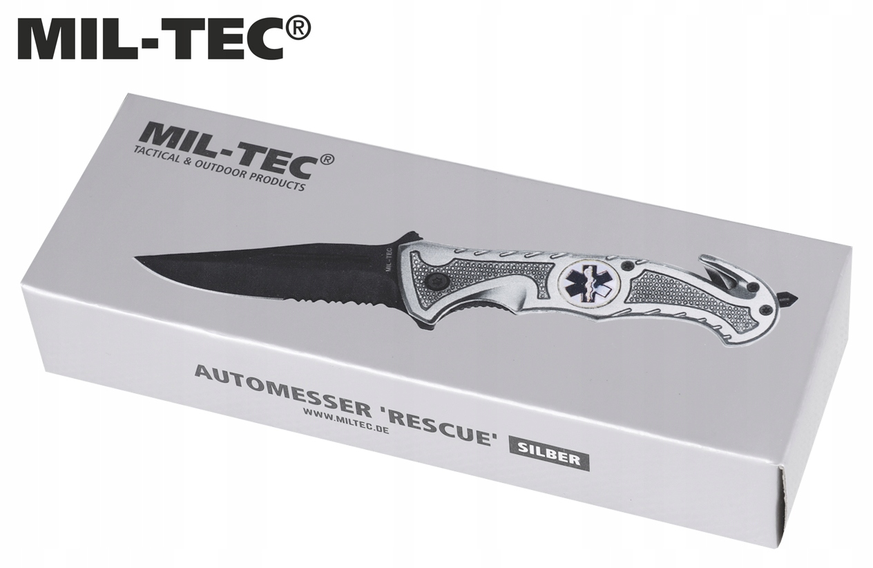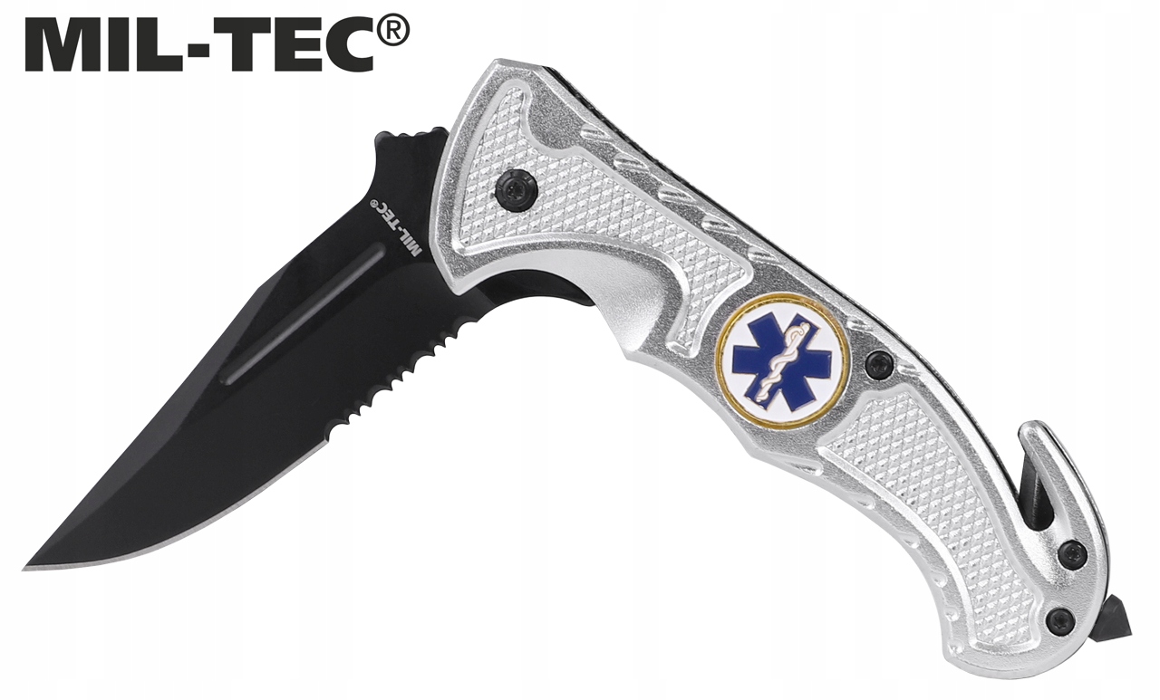 На конце рукоятки имеется стеклобой и острый нож для быстрого перерезания ремней безопасности. , кабели или линии. Благодаря своим компактным размерам и небольшому весу он идеально подходит в качестве незаменимого снаряжения спасателя.