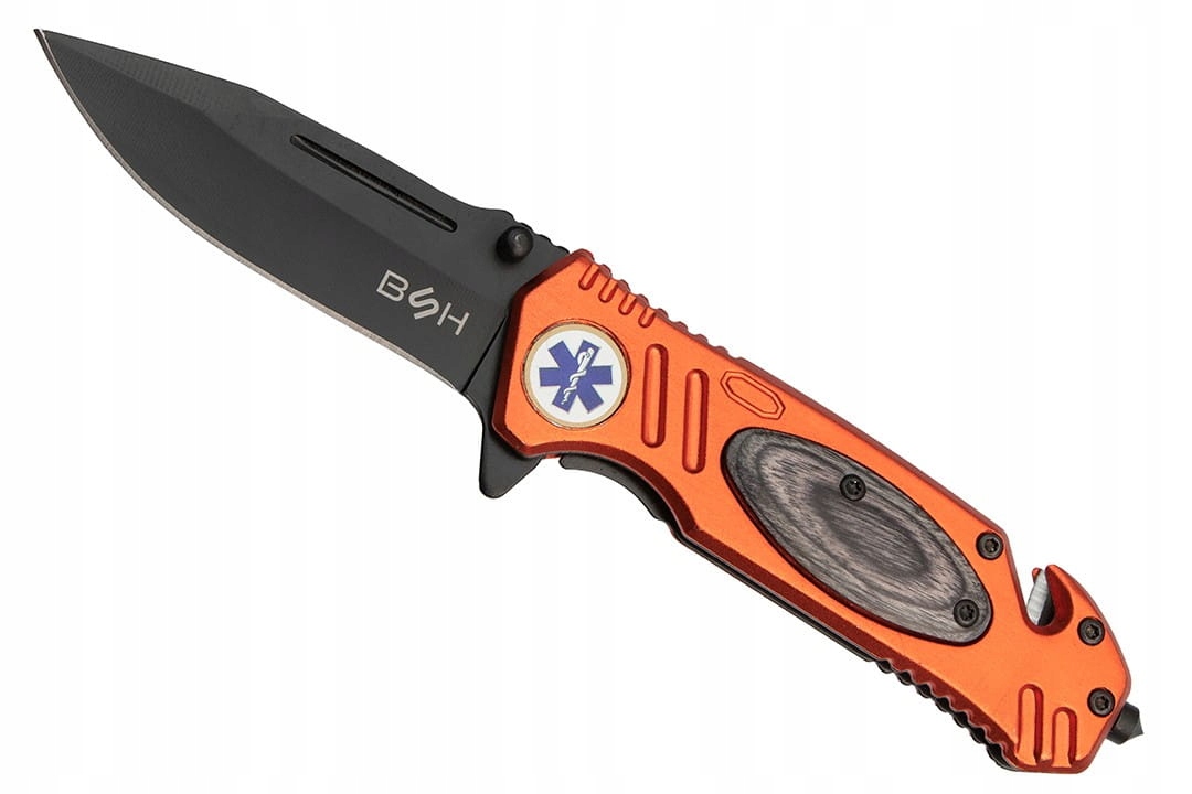 Нож 3-в-1 оснащен удобной насадкой, позволяющей прикрепить его к любому карману брюк или куртки. В сложенном виде нож занимает мало места, поэтому его можно поместить куда угодно. Спасательный нож BSHтакже очень хорошо подходит для обычных пользователей во время повседневных дел, например. Нож имеет специализированную маркировку, информирующую о его основном использовании медицинскими службами. Кроме того, нож имеет характерные для спасательных служб оранжевые элементы, которые также пригодятся в случае потери.