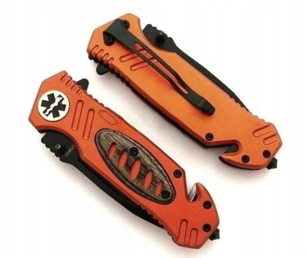 Складной нож, посвященный туристам, водителям и спасательным службам. Конструкция ножа позволяет открывать лезвие одной рукой с помощью так называемого флиппера и пружинного механизма, поддерживающего выброс клинка. Дополнительно в ручке имеется лезвие ремня безопасности и стеклобой. Это, несомненно, лучший вариант, оснащенный несколькими практическими функциями, необходимыми в чрезвычайных ситуациях.