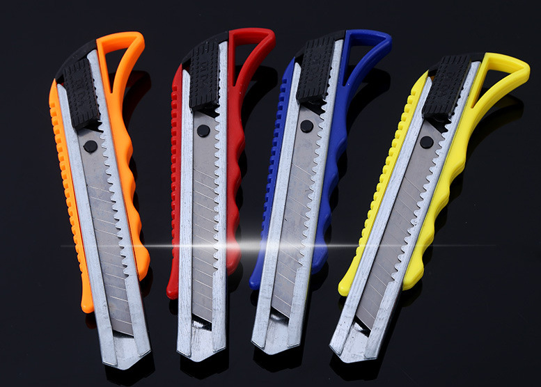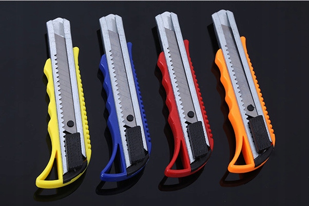 Нож с выдвижным лезвием универсального применения. Обычно его называют обойным ножом, но спектр его применения гораздо шире. Он может работать с бумагой и картоном. Незаменим при упаковке вещей во время переездов.