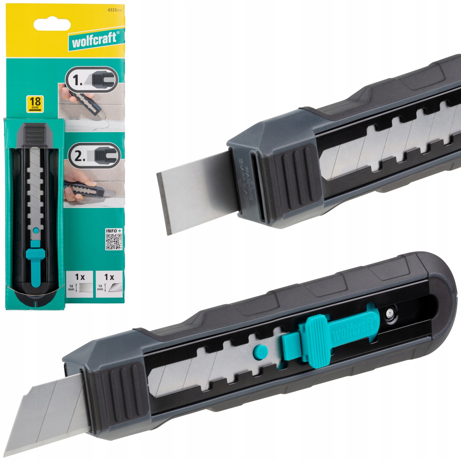 - Скрещенная нож с двойным лезвием совместим со всеми лезвиями шириной 18 мм, доступными на рынке, а также с скребками Wolfcraft (Art. № 4311000).