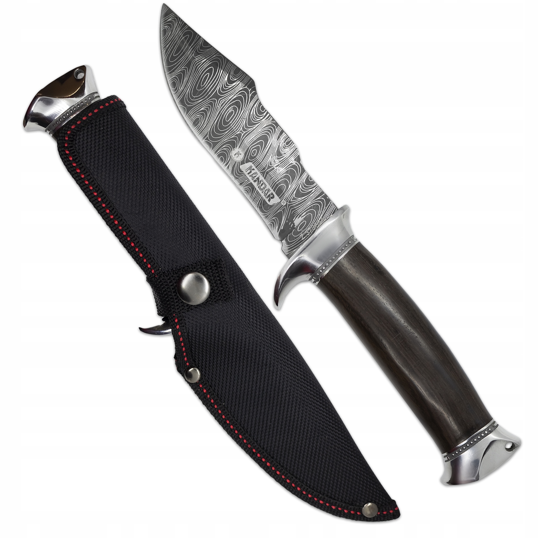 Лезвие изготовлено из оксидированной нержавеющей стали Z.373551, правильная закалка которой обеспечивает должную остроту, и переточка ножа не составит проблем. Клинок имеет отпечаток, имитирующий дамасскую сталь.
