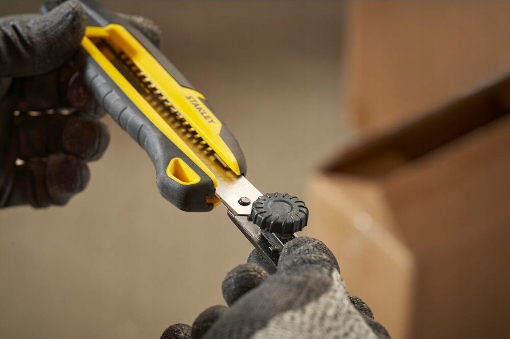 - Нож с интегрированной системой лопатки Stanley® 18 мм с винтовой блокировкой имеет уникальный механизм, который позволяет быстрое, простое и безопасное разрушение лезвия одной рукой, без необходимости использовать дополнительный инструмент или аксессуар.