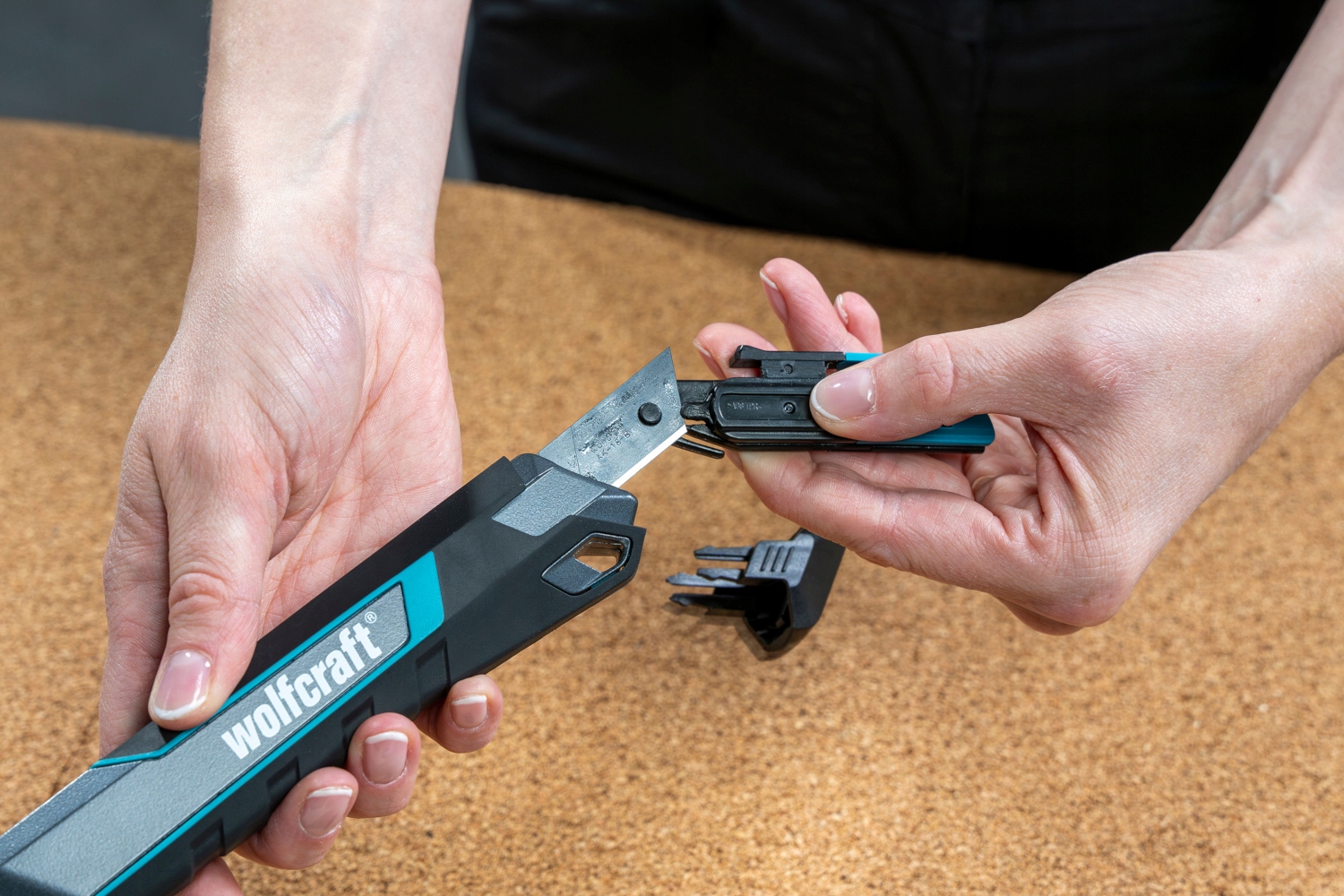 - Для безопасного и контролируемого отламывания сегментов в съемной насадке ножа имеется подходящий держатель лезвия.