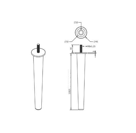 1x круглая мебельная ножка
