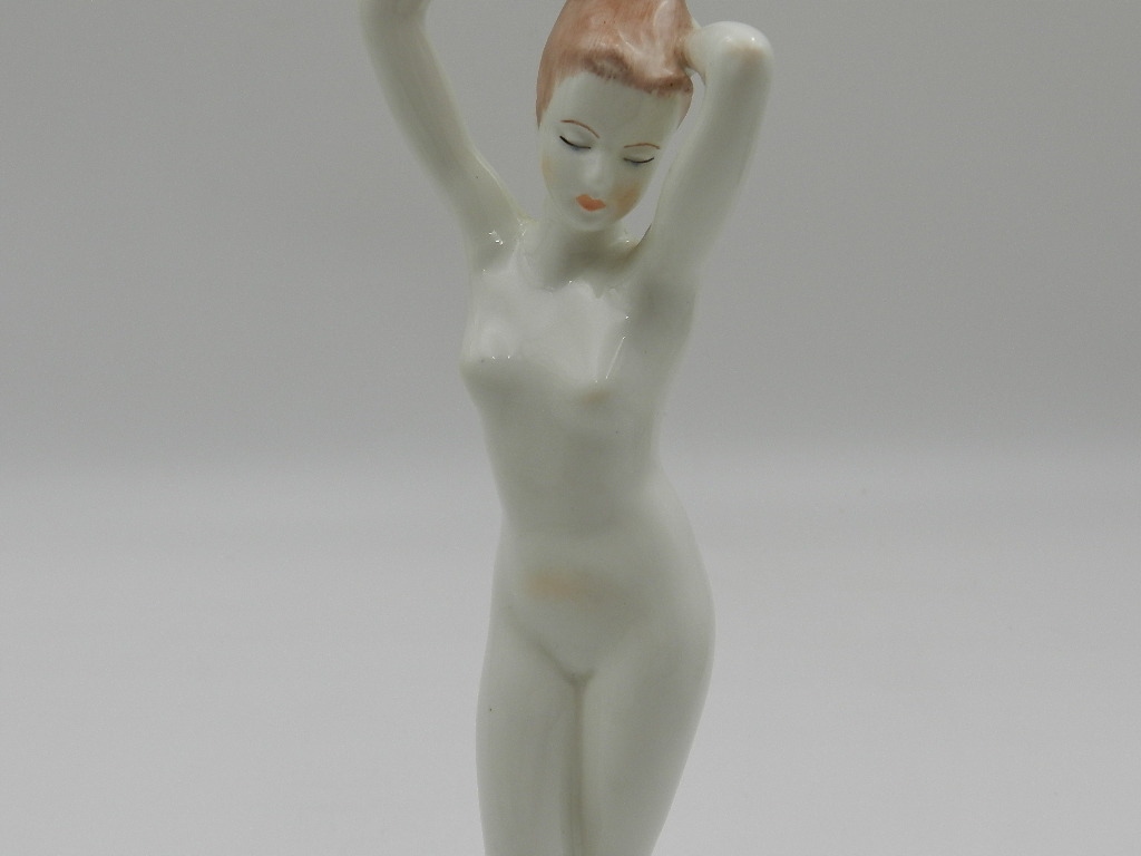 Белоснежный фарфор красивой и возвышенной формы, передающий фигуру обнаженной женщины в чувственной позе.